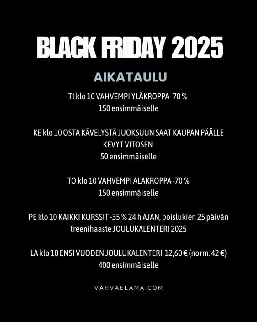 Kursseja myydään perjantaita lukuunottamatta vain rajattu määrä.